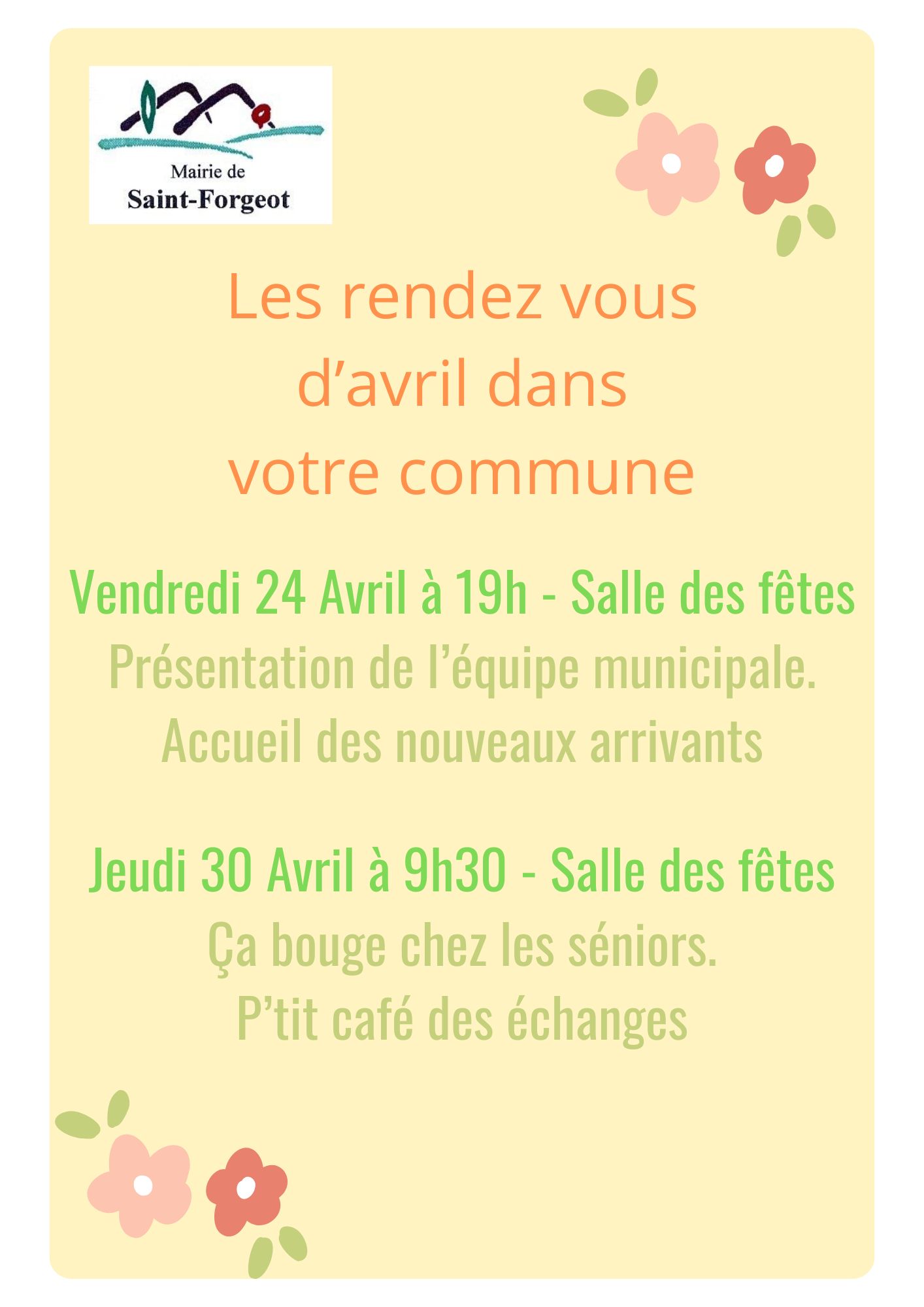 Les rendez-vous d’avril à Saint-Forgeot